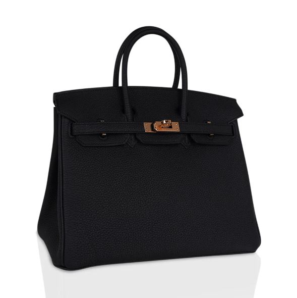Hermes Birkin 25 Black Togo Rose Gold Hardware Bag Z Stamp