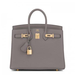 Hermes Birkin 25cm Etain Tin Grey Gold Hardware Bag Z Stamp