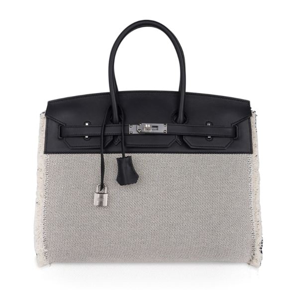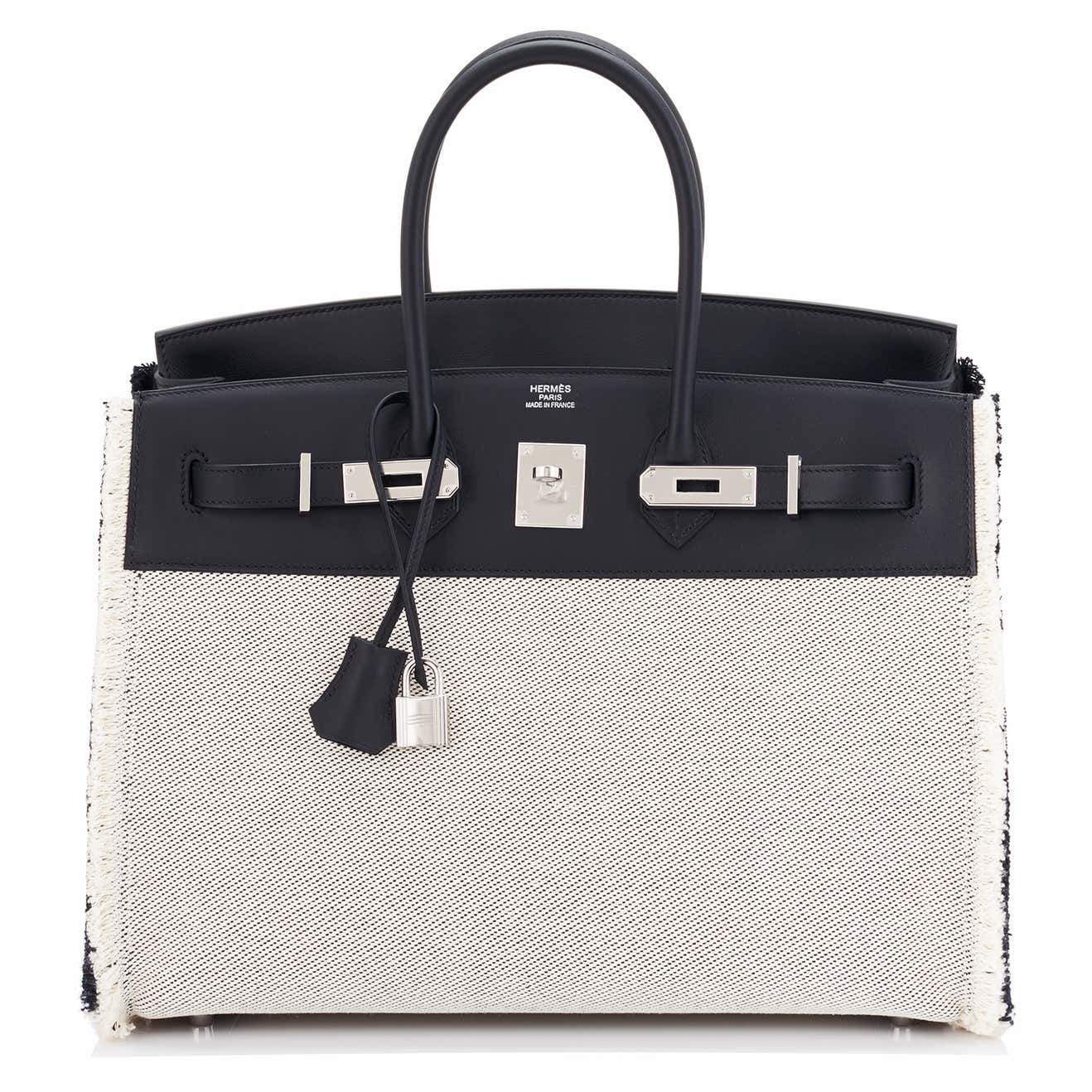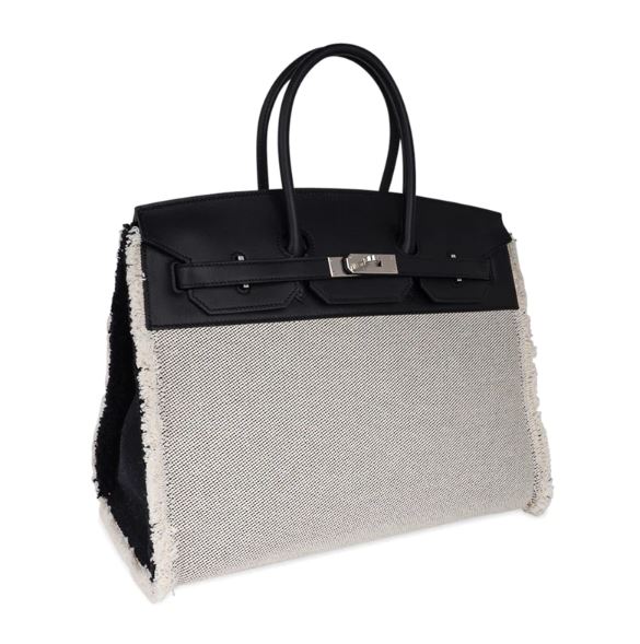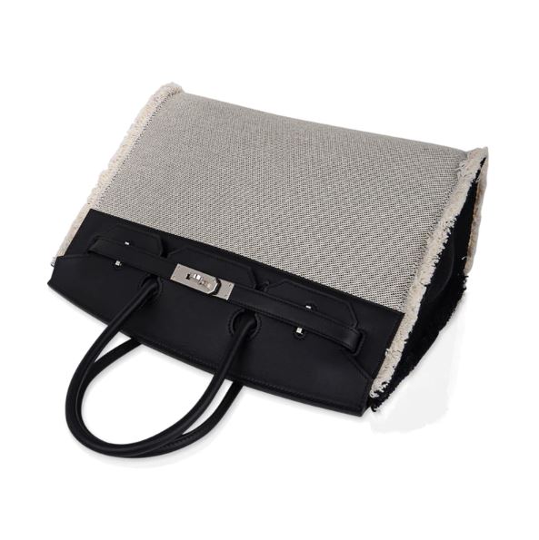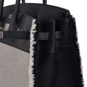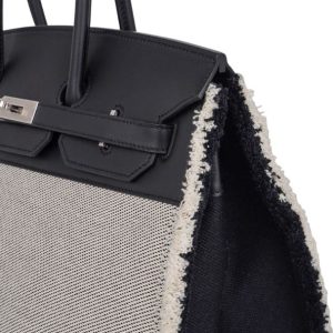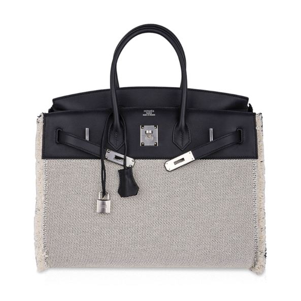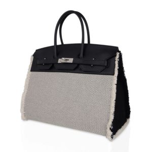 Hermes Birkin 35cm Black Fray Fray Toile Tote Bag VIP Limited Z Stamp