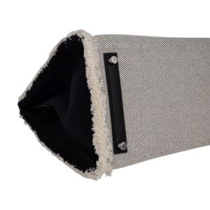 The superb black and ecru combination accented with fresh palladium hardware epitomizes a modern chic and noble sensibility.