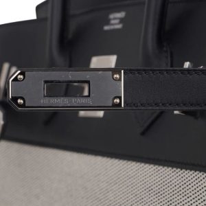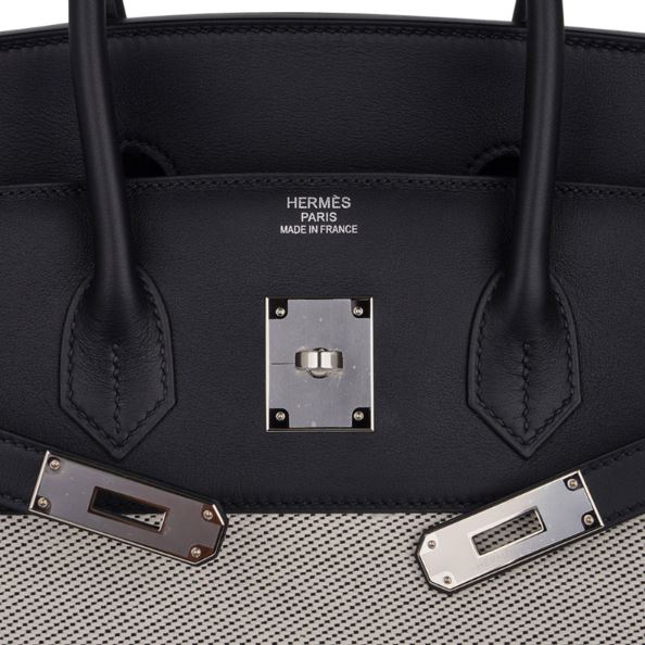This exclusive 35cm Birkin features elegant Toile H canvas body and luscious Black Swift Leather.