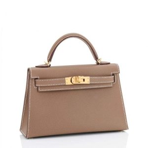 You will turn heads everywhere you go with this gorgeous Etoupe Mini Kelly!