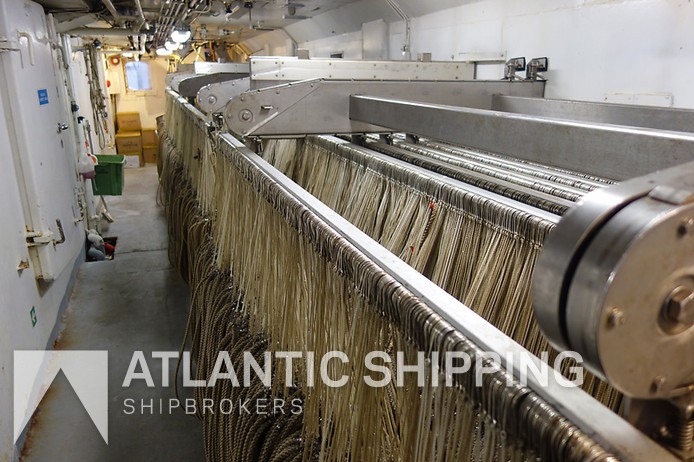 | DECK EQUIPMENT | Autoline system 35.000 hooks, Mustad baiting machine (new 2018), 1 x Brattvaag CM-2202BR linehauler winch, 1 x anchor winch, the longline winch has been updated with new baiting machine and other equipment 06/2018. |