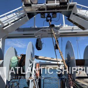 | DECK EQUIPMENT | 3 x 17 ts trawl winches, 2 x outhaul winches, 1 x 12 ts cod end winch, 2 x 10 ts net drums fore, 2 x 12 ts single net drums aft |